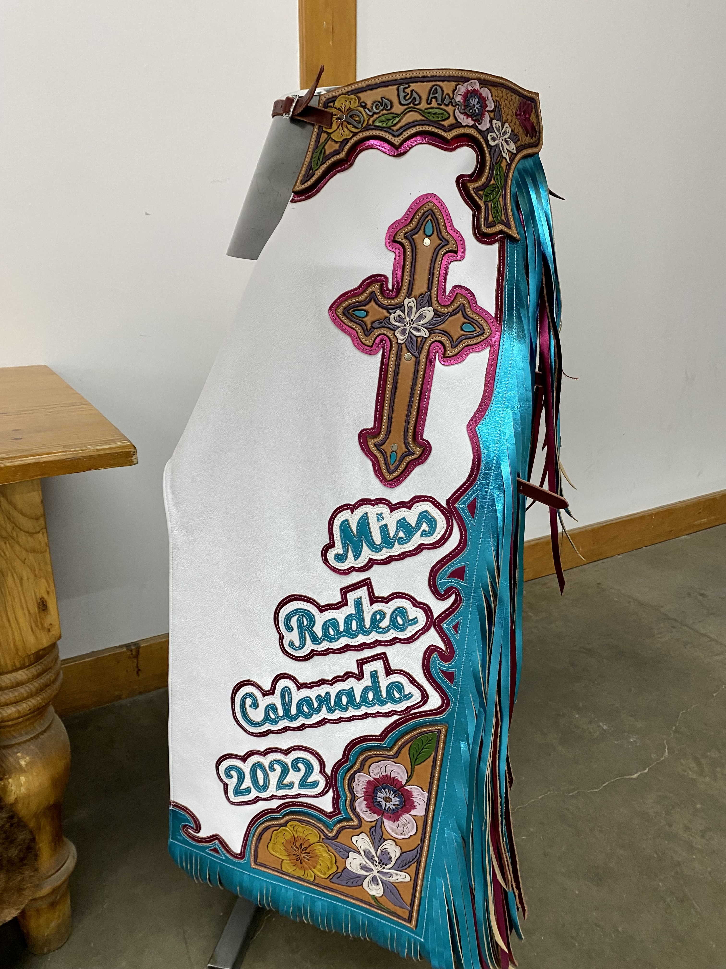 Retired PRCA Bull Fighter Ben Lee built these chaps and matching vest during the year of Sharlee...